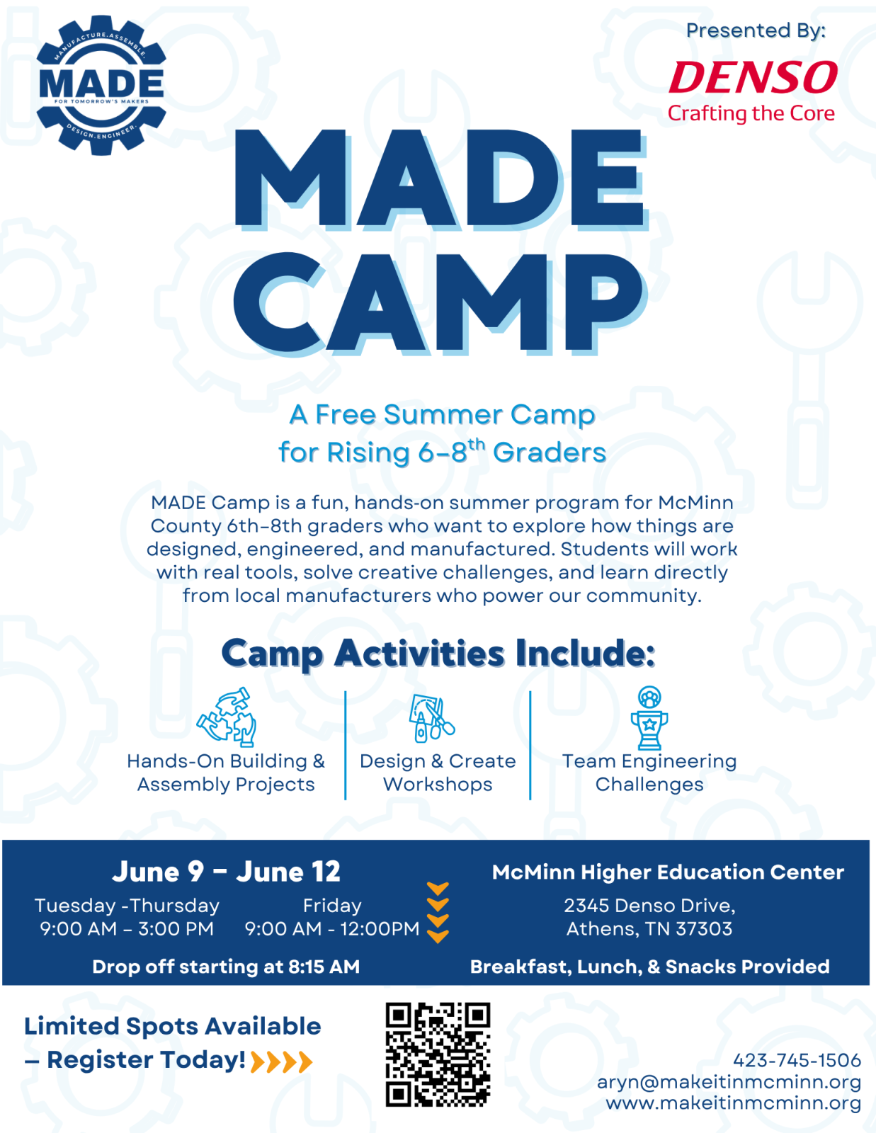 MADE Camp is made possible through the generous support of our community partners. We are deeply grateful for their commitment to supporting local students and workforce development in McMinn County.